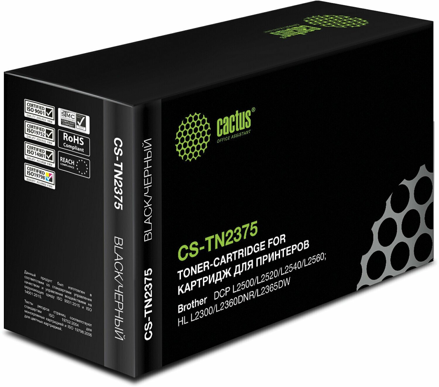 Картридж Cactus CS-TN2375, черный, 2600 страниц, совместимый для Brother HL-L2300DR, HL-L2340DWR, HL-L2360DNR, HL-L2365DWR, DCP-L2500DR, DCP-L2520DWR, DCP-L2540DNR, DCP-L2560DWR, MFC-L2700DWR, MFC-L2720DWR, MFC-L2740DWR
