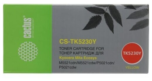 Картридж Cactus CS-TK5230Y желтый, для KYOCERA Ecosys M5521cdn/M5521cdw/P5021cdn/P5021cdw, ресурс до 2600 страниц