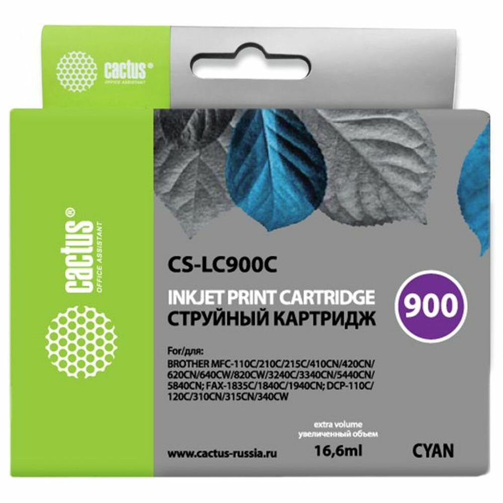Картридж струйный Cactus CS-LC900С CS-LC900C голубой (16.6мл) для Brother DCP-110/115/120/MFC-210/215/FAX-1840