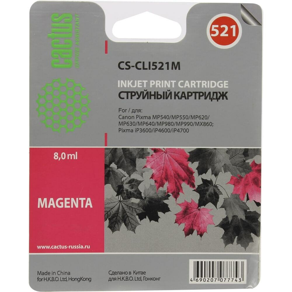 Картридж струйный Cactus CS-CLI521M пурпурный (8.4мл) для Canon Pixma MP540/MP550/MP620/MP630/MP640/MP980/MP990/MX860/iP3600/iP4600/iP4700