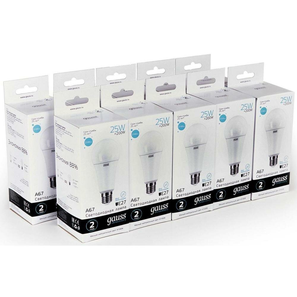 Упаковка ламп 10 шт Gauss LED Elementary A67 25W E27 2100lm 4100K 1/10/50