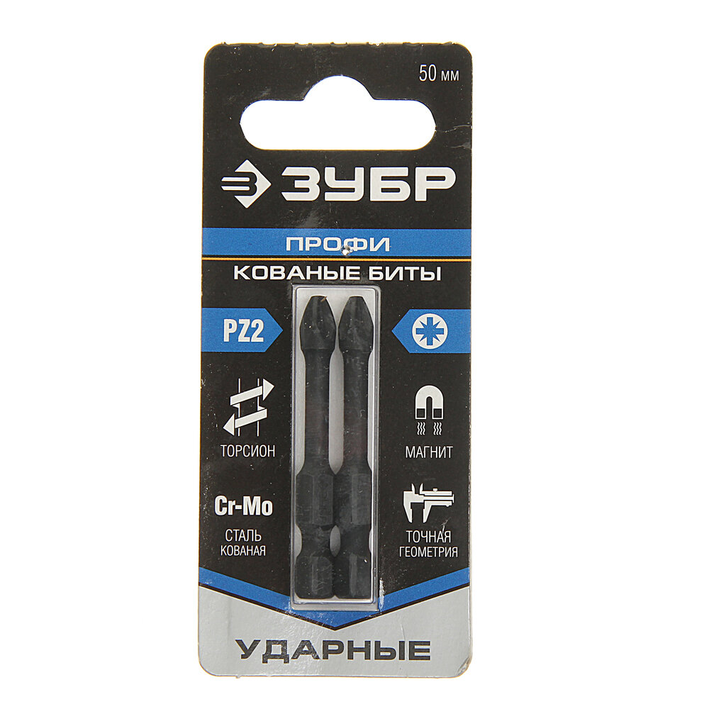 ЗУБР PZ2, 50 мм, 2 шт., кованые биты Pozidrive 26023-2-50-S2 для ударных шуруповертов