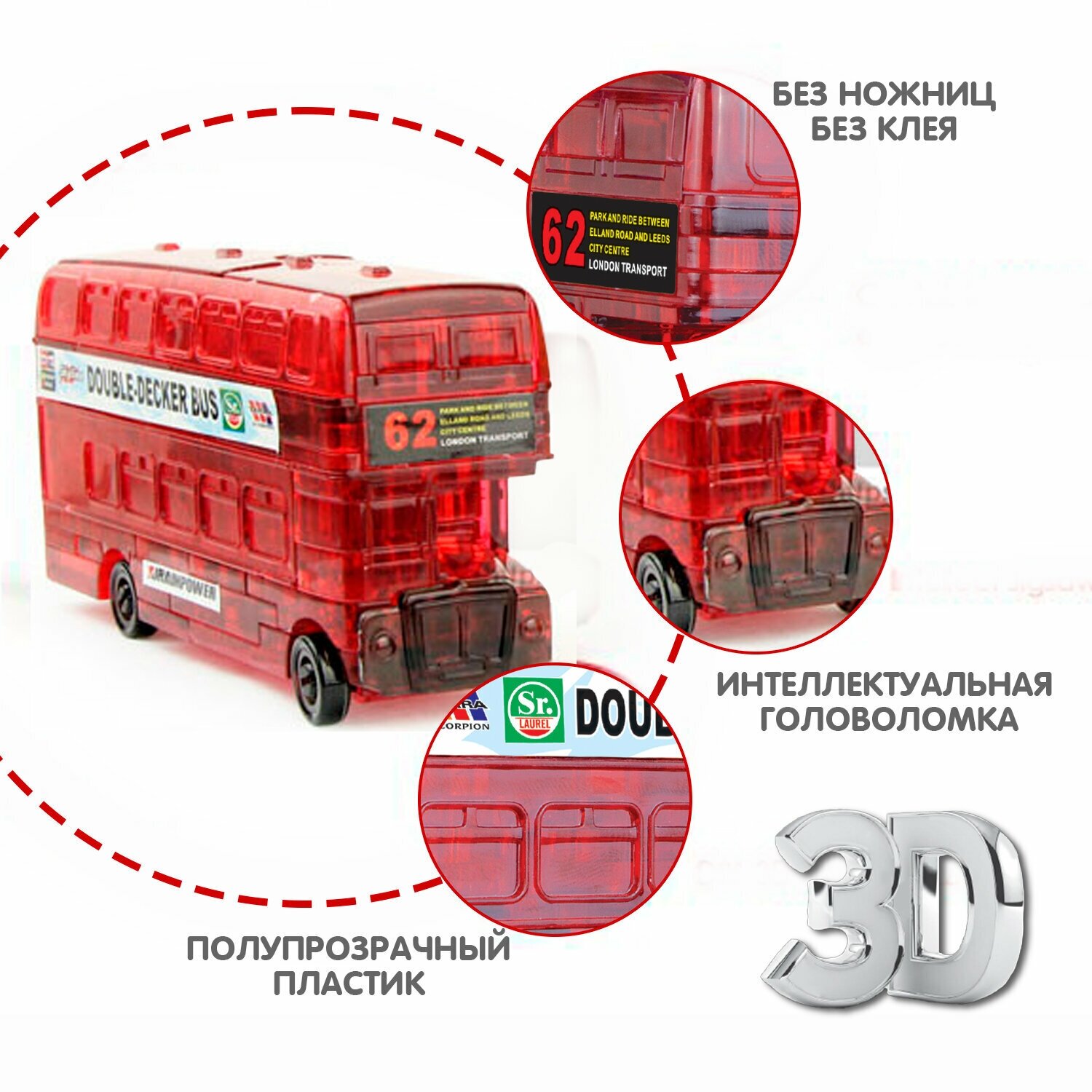 Пазл 3D Bondibon Магия Кристаллов "автобус", 54 детали, красный (ВВ5238)
