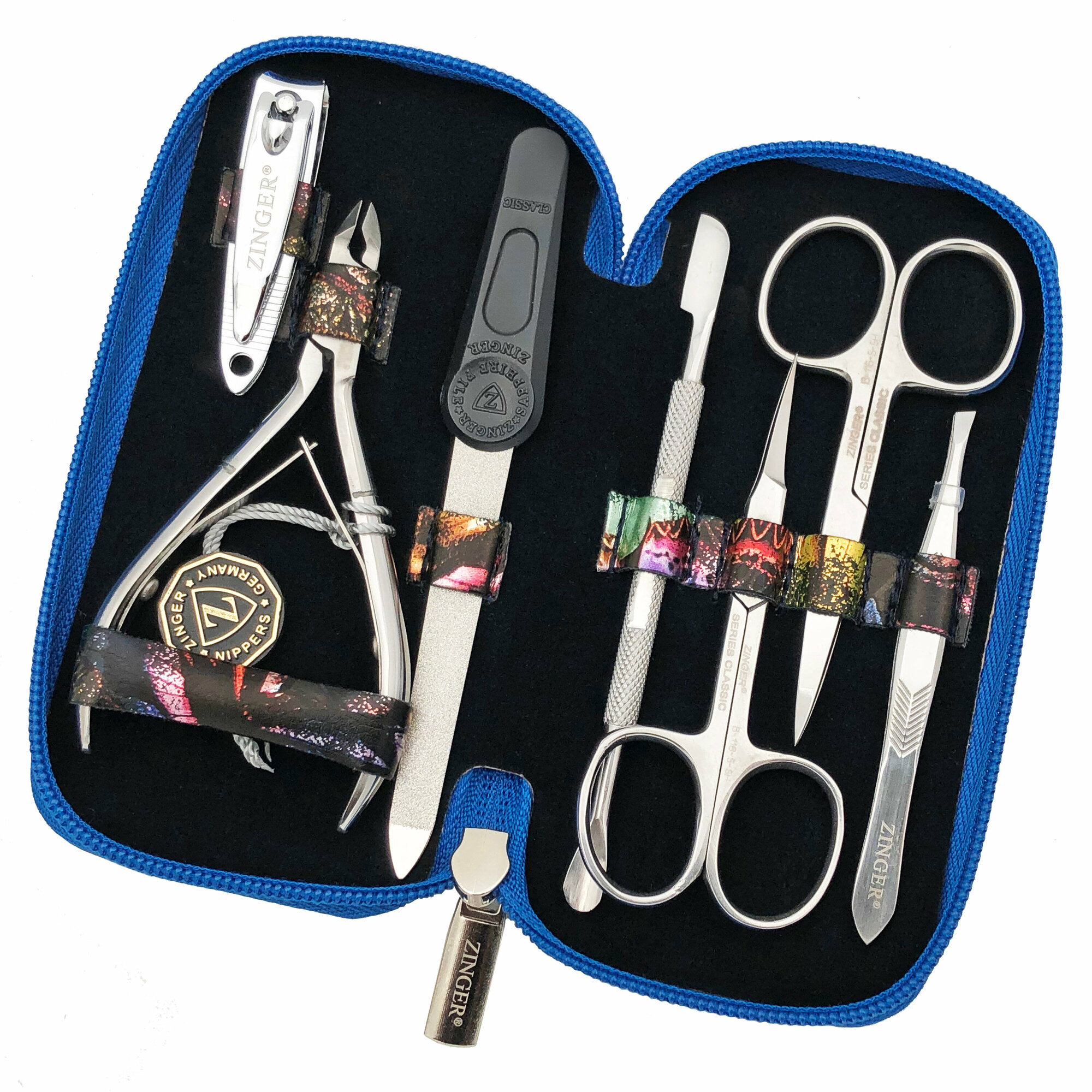 Маникюрный набор Zinger 7105, 7 предметов, серебристый/темный синий