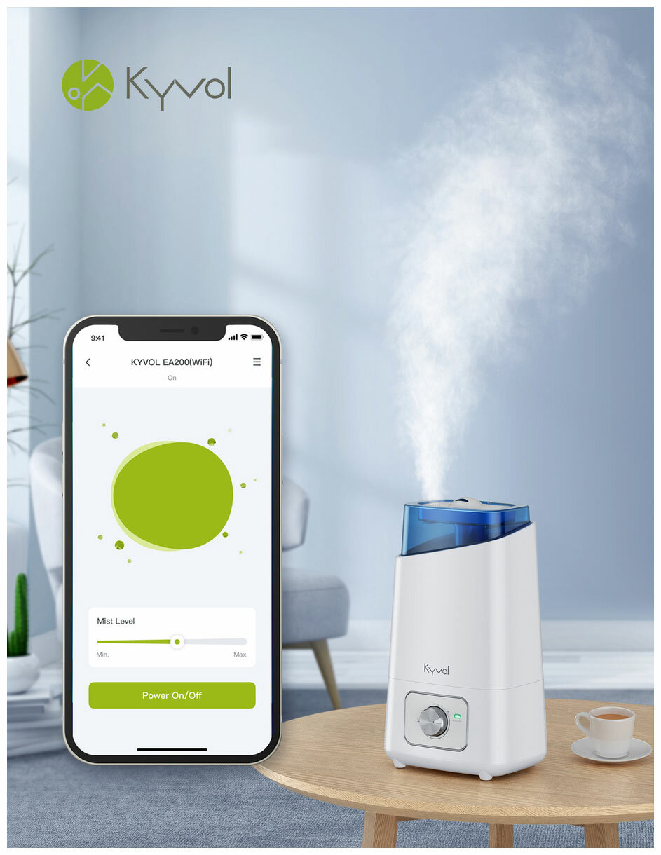 Умный Wi-Fi увлажнитель воздуха Kyvol EA200 Бело-голубой (с диммером управления) - Управление со смартфона в подарочной упаковке