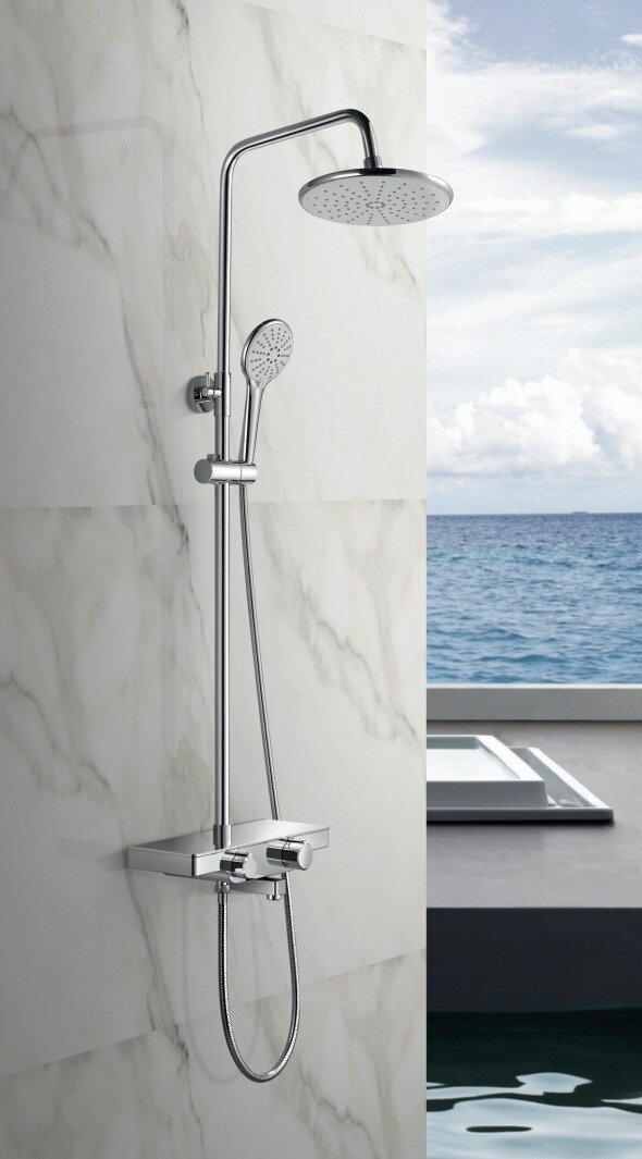 | Дополнительная информация | с верхним, тропическим душем, смесителем и ручной лейкой, латунь, хром |