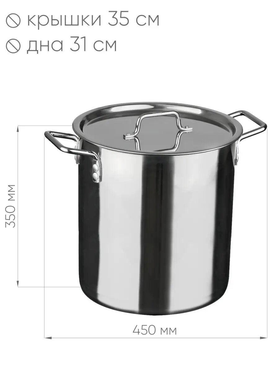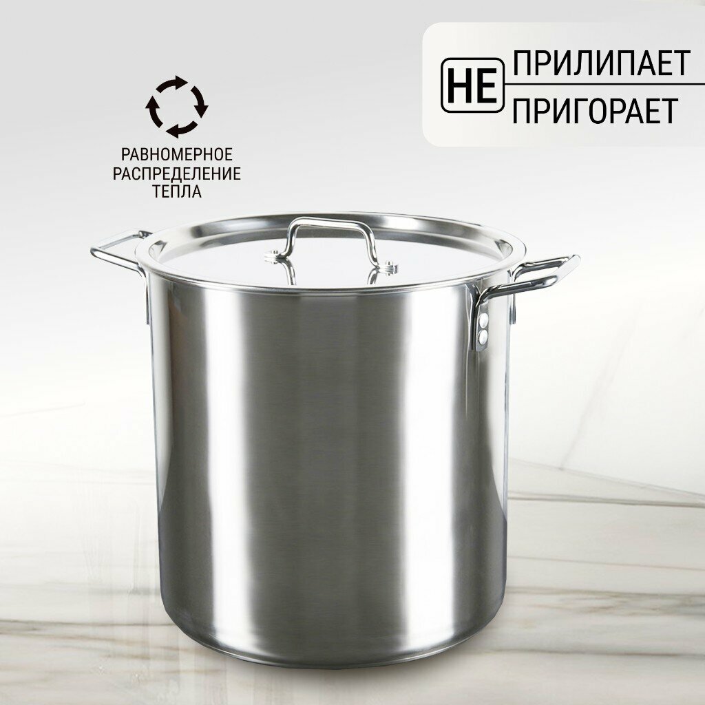 Кастрюля «Общепит», 20 л, d=35 см, h=23 см, металлическая крышка, индукция