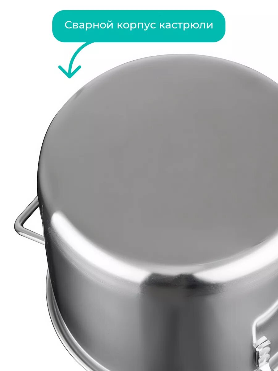 | Дополнительная информация | кастрюля и крышка из нержавеющей стали; капсульного дна нет; подходит для электрической, газовой, стеклокерамической и галогенной плит; не применяйте абразивные инструменты и сильнохлорированные моющие средства; не оставляйте пустую посуду на плите; во избежание образования белых пятен солите воду после закипания; если на поверхности изделия все же появились пятна, используйте для их удаления несколько капель уксусной или лимонной кислоты |
