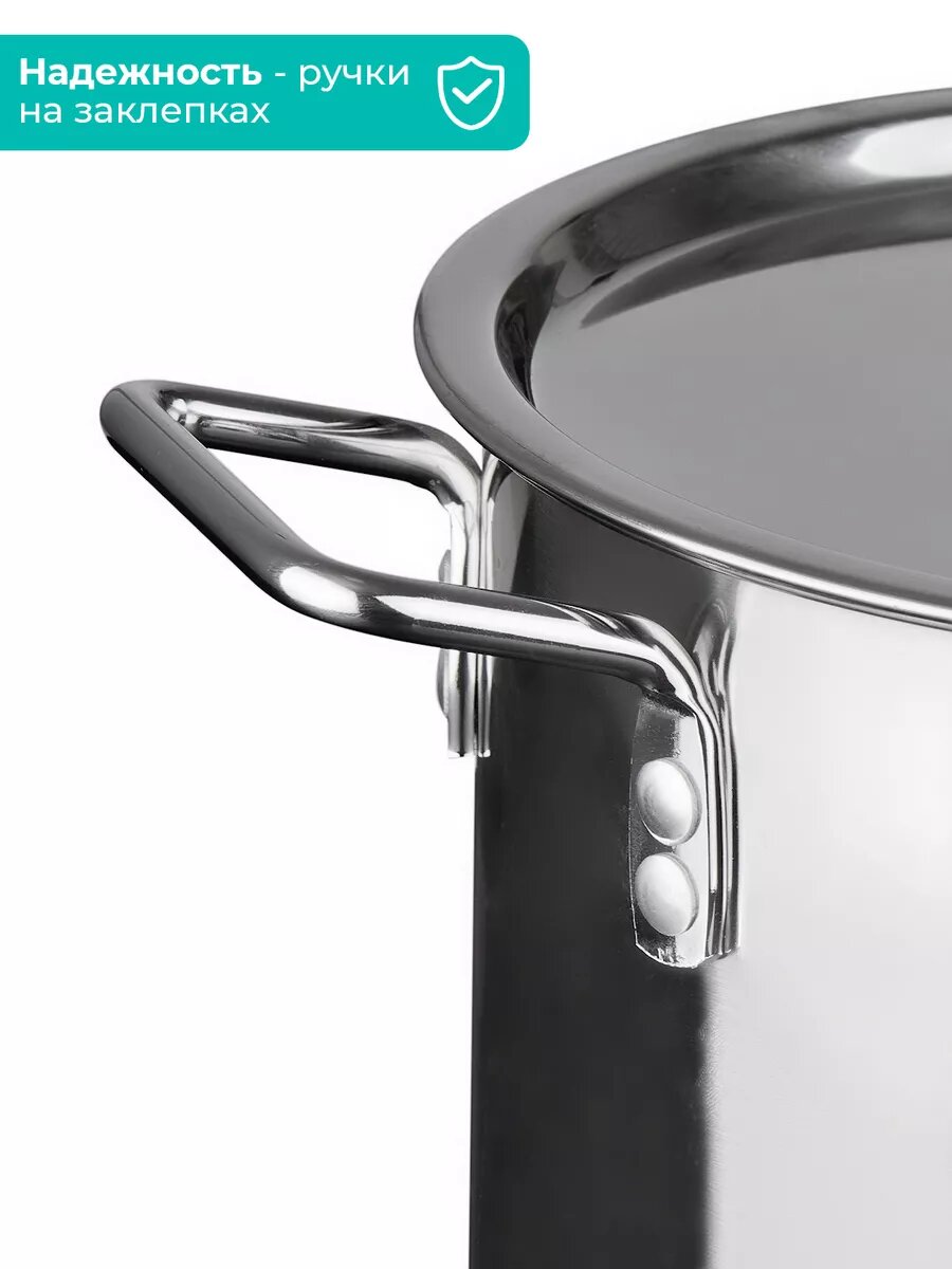 Кастрюля «Общепит», 20 л, d=35 см, h=23 см, сварная, с клёпаными ручками, металлическая крышка