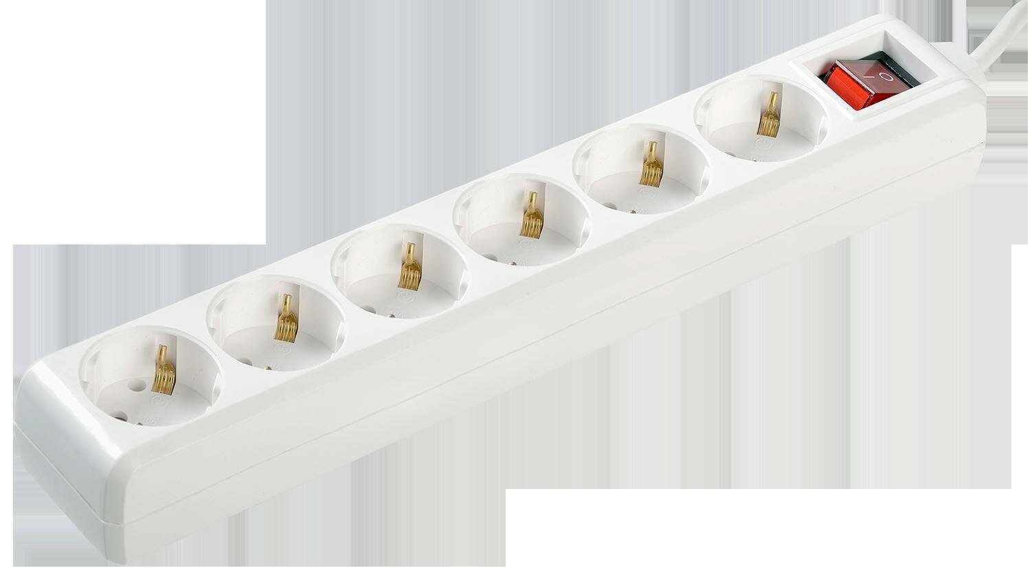 Удлинитель с выключателем IEK У06К-выкл, ПВС 3 x 1 мм², с заземлением, 6 розеток, 3 м, белый