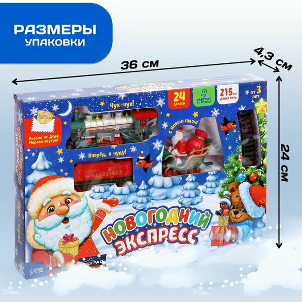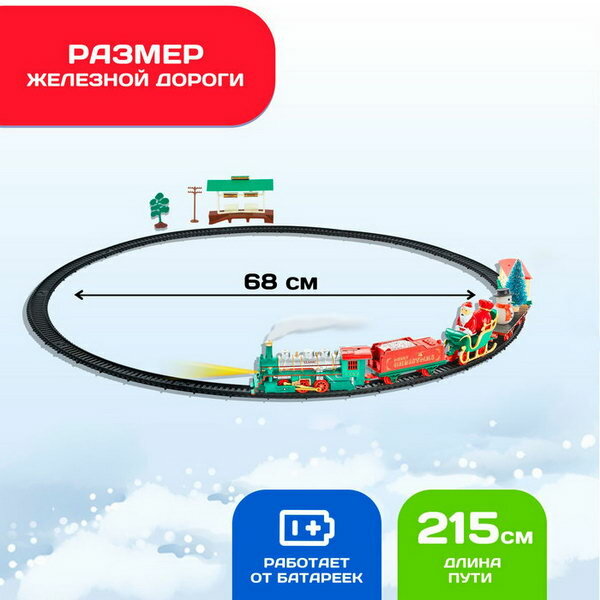 Железная дорога «Новогодний экспресс», работает от батареек, в пакете