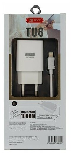 Сетевое ЗУ BYZ TU8, 1хUSB-А, 2.1А + кабель (AM-microBM), 1 м, белый