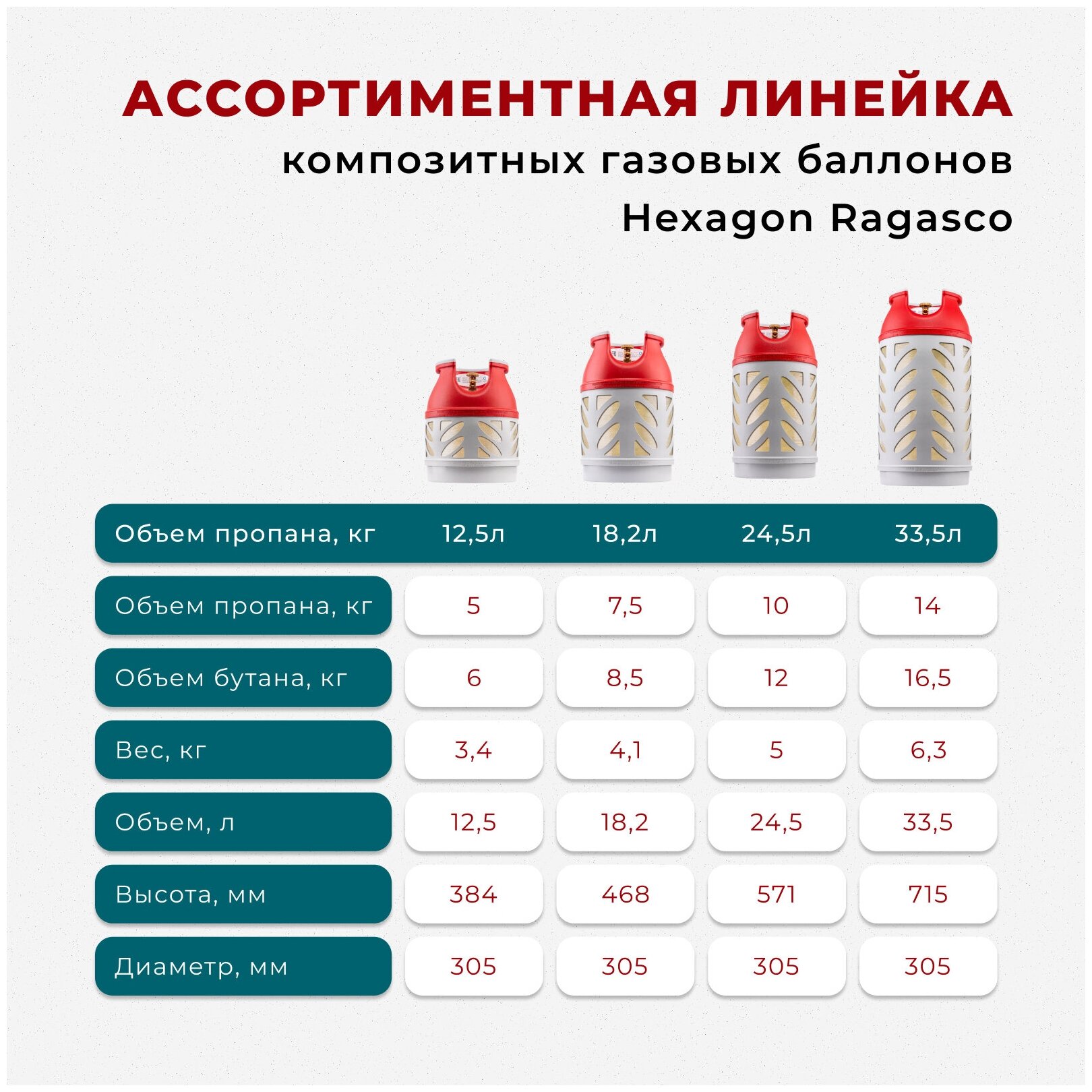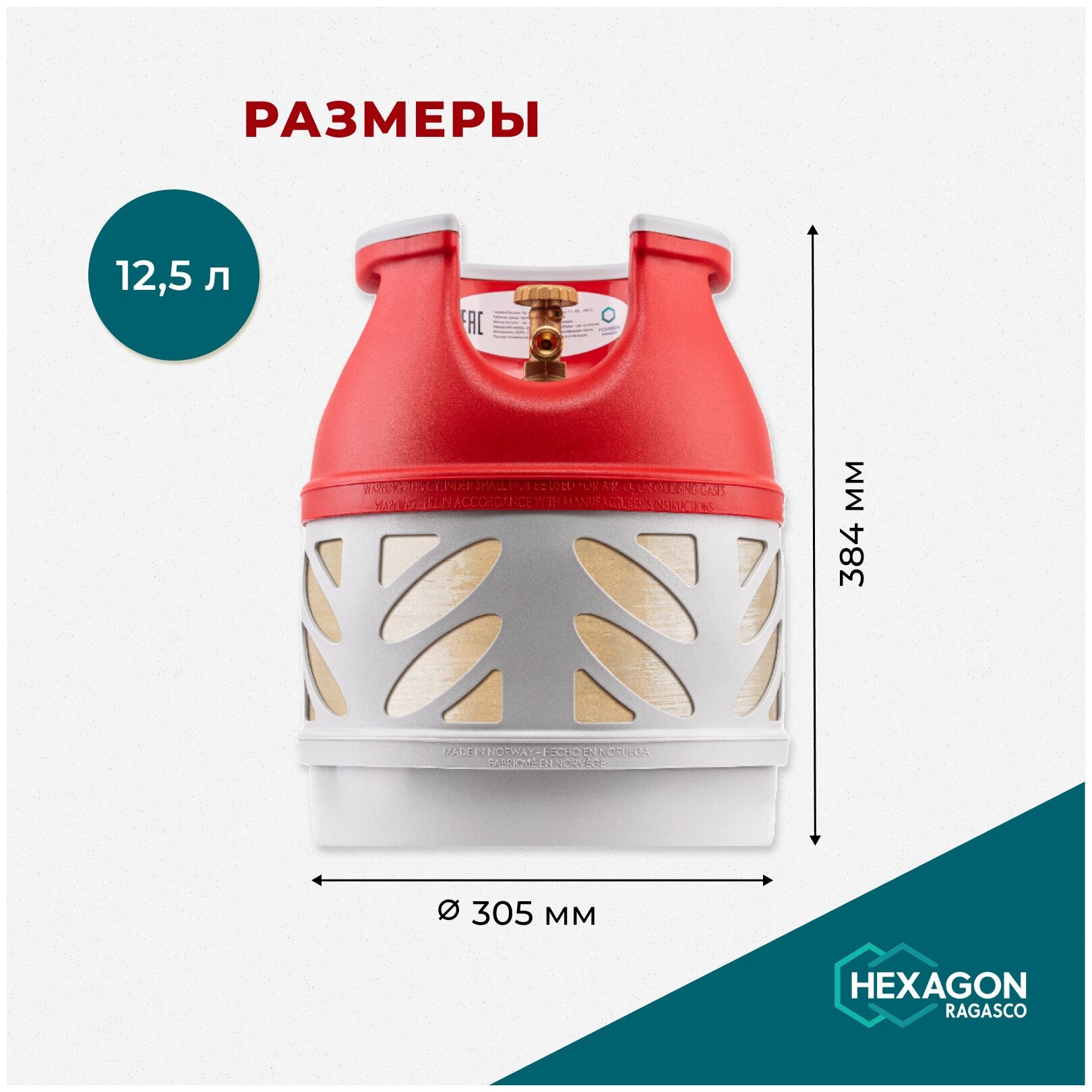 Баллон композитный Hexagon Ragasco, 12,5л, белый-красный .