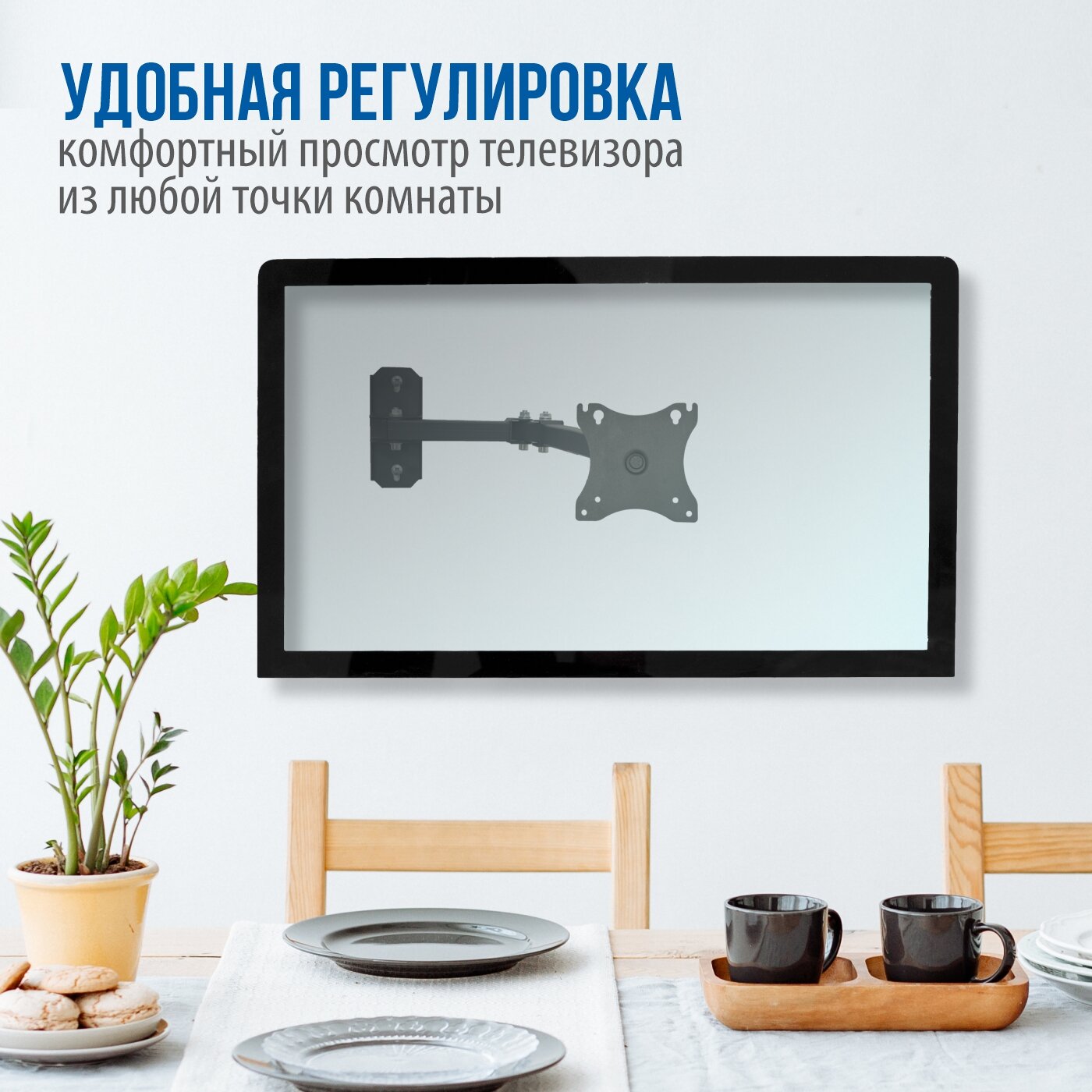 | Плюсы: | очень удачный кронштейн. повесила телевизор на кухне. |
