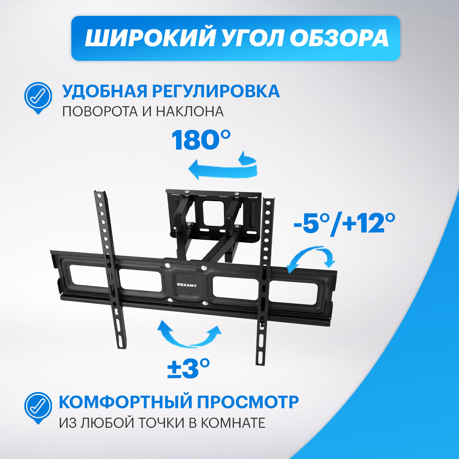 Кронштейн Rexant 38-0096 для телевизора 32"-65", наклонно-поворотный, двойное колено серия HOME