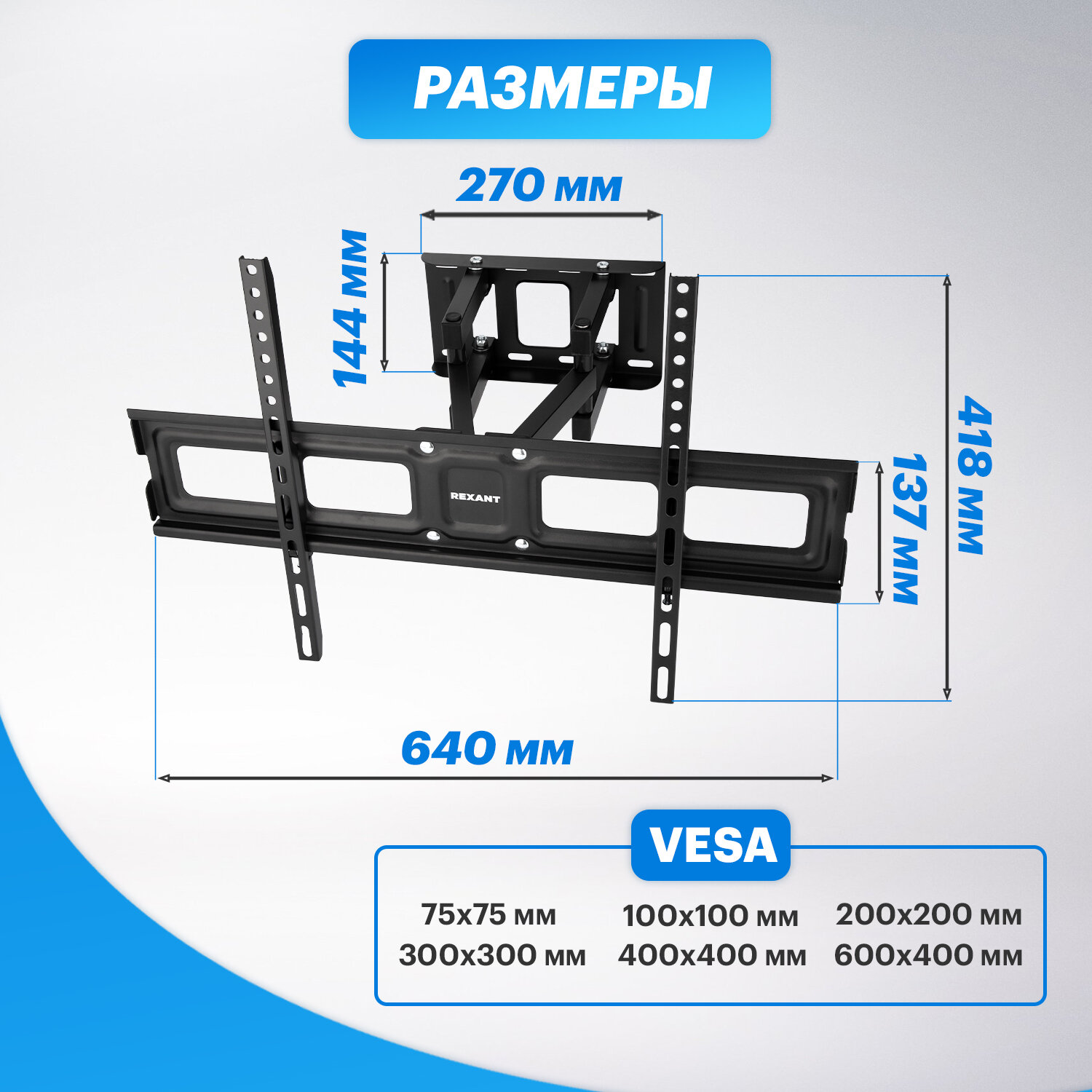 Купить Кронштейн настенный наклонно поворотный REXANT крепление для телевизора 32-65