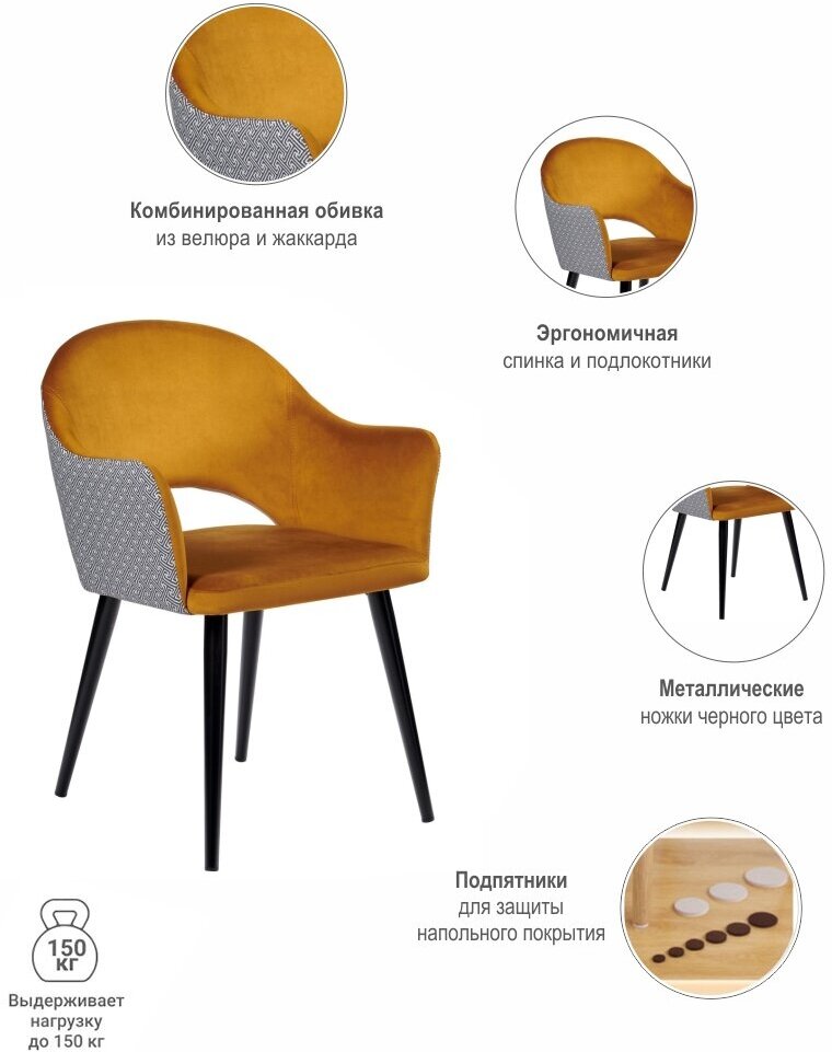 Купить Стул кухонный Bruno горчичный велюр с жаккардом / Стулья для кухни со спинкой / Стул кресло / Кресло на балкон / Стулья для гостиной / Мебель лофт