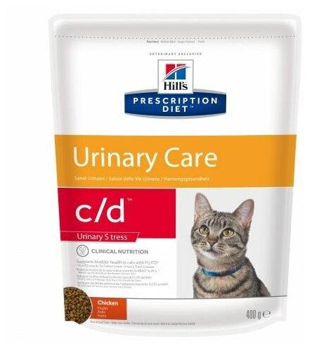Сухой корм для кошек Hill's Prescription Diet c/d Multicare Urinary Stress при профилактике цистита и мочекаменной болезни (мкб), курица, 400г х 2 шт