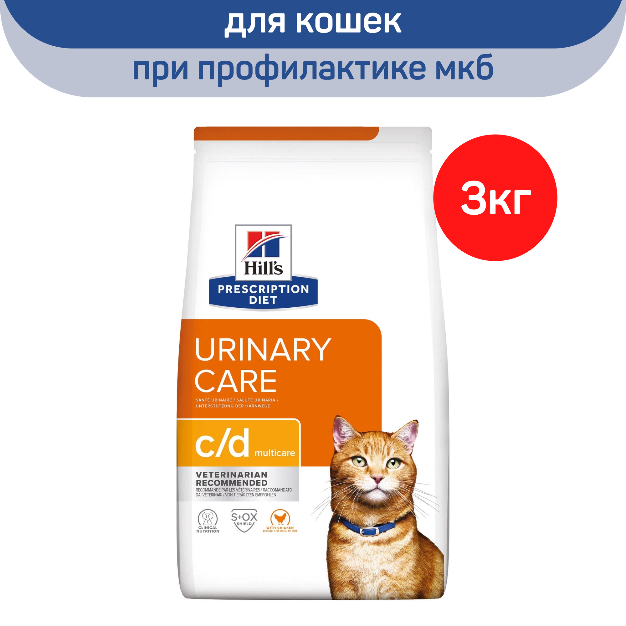 Сухой диетический корм для кошек Hill's Prescription Diet c/d Multicare Urinary Care при профилактике мочекаменной болезни (мкб), с курицей, 3кг