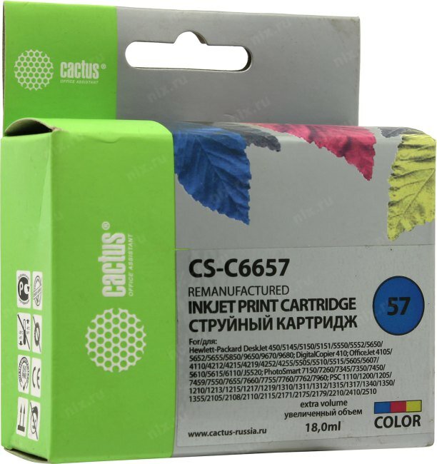 СохранитьКартридж струйный CACTUS (CS-C6657) для HP Deskjet 5150/5550/5600/5850, цветной интересное: