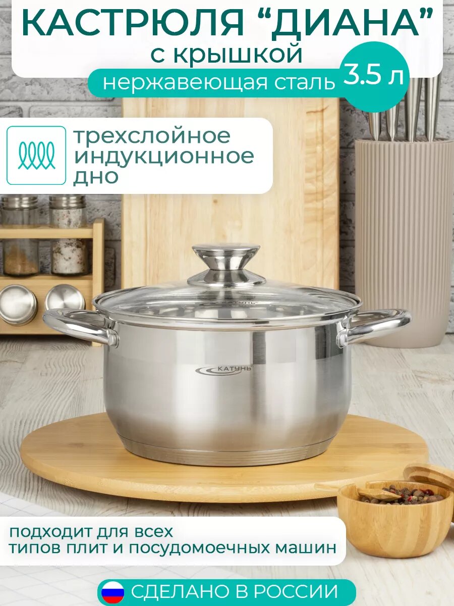 СохранитьКастрюля 3,5 л катунь, диана, KT01-D-30, нерж.сталь, комбинированная полировка интересное: