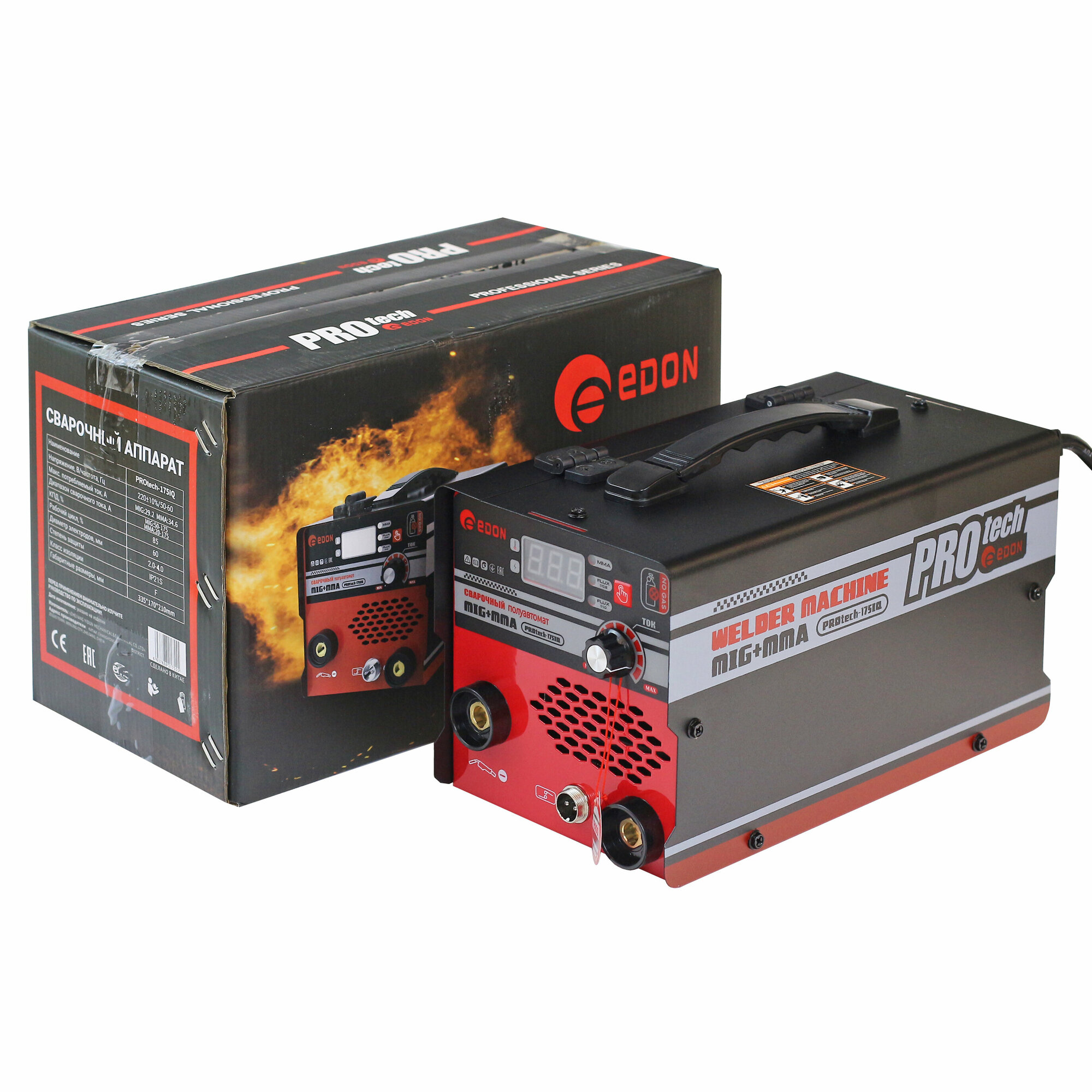 Сварочный аппарат полуавтомат инверторный Edon PROtech-175IQ 3в1/ MIG MMA/ подарок отцу мужу