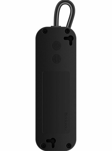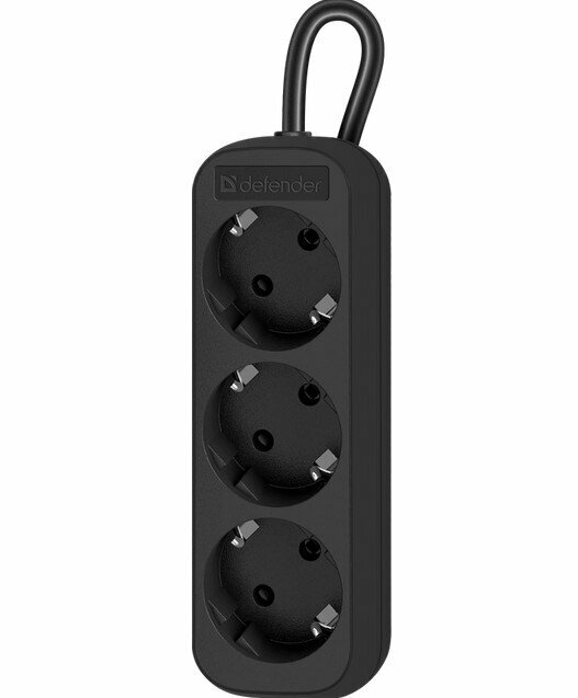 Удлинитель с заземлением Defender M350 5.0 м, 3 розетки, черный