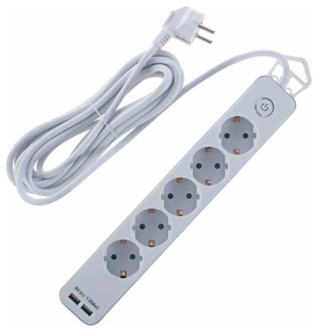 Удлинитель duwi, Supraline, 5 гнезд 3м с выключ с/з шторки 3х1,5мм² 2 USB порта 3680Вт 16А 32068 5
