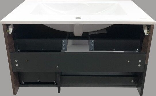 Тумба с раковиной Comforty Порто 90 9110 подвесная дуб темно-коричневый/черный муар