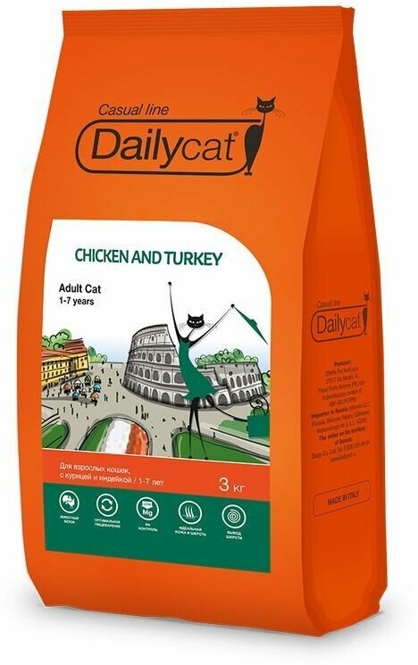 Daily Cat Casual line Chicken and Turkey - Сухой корм для взрослых кошек, с курицей и индейкой 3 кг