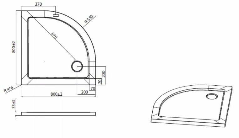 Поддон радиальный SMC Cezares TRAY-M-R-90-550-35-W 90x90 см