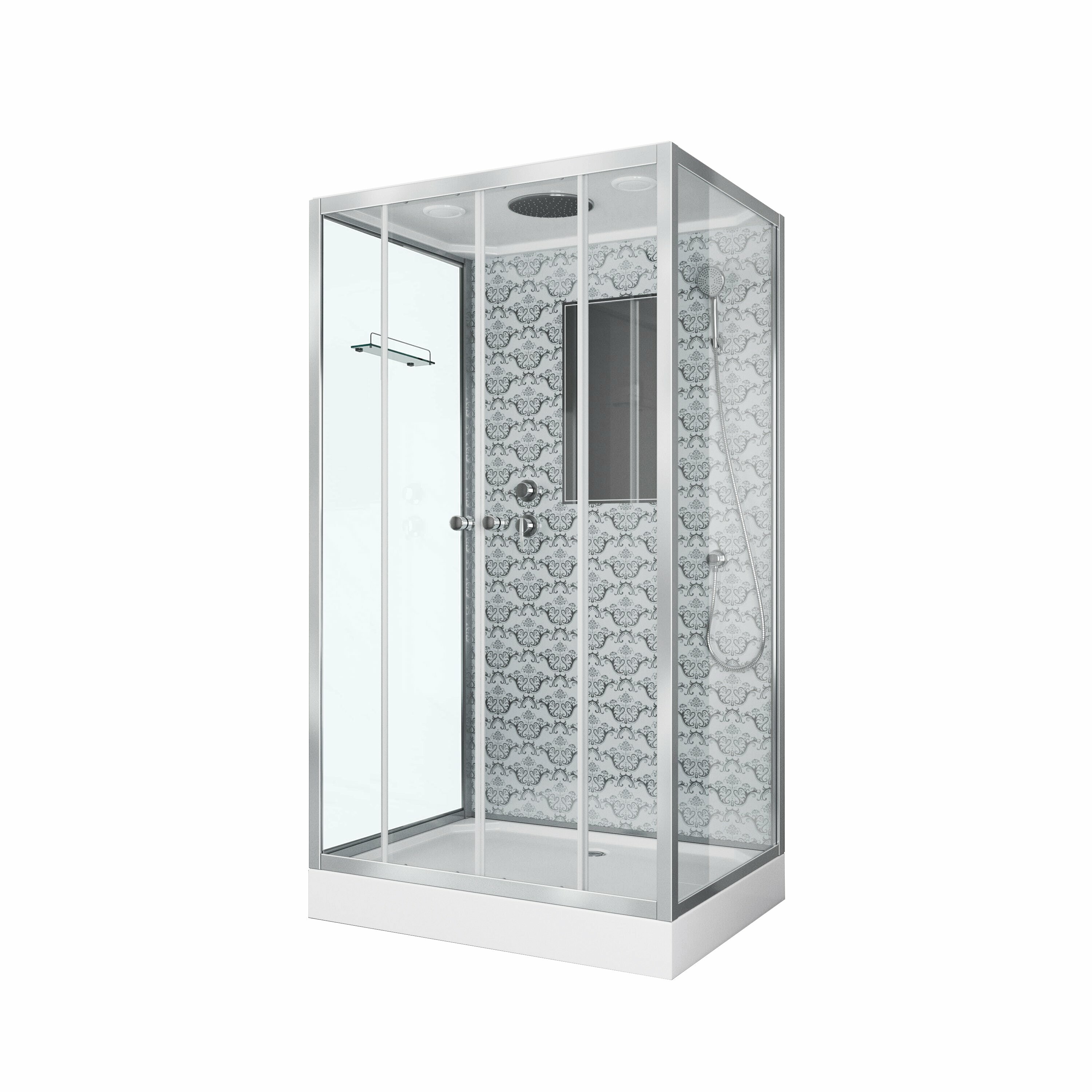 Душевая кабина ng-7772qw (1200x900х2100) низкий поддон стенки серебро