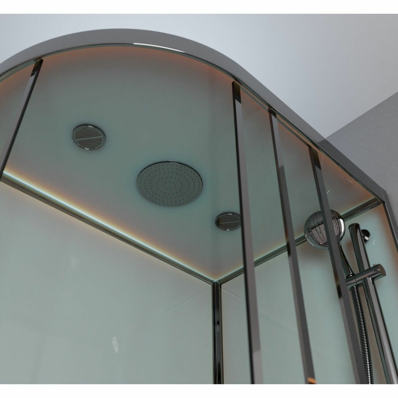 | Дополнительная информация | материал профилей: полированная сталь (полированный хром), колба сифона: ширина 90 мм (с ловушкой для волос и гидрозатвором), закалённые стёкла, безсиликоновая сборка, резьбовые соединения смесителя с душем, верхний душ (с резиновыми соплами от известков |