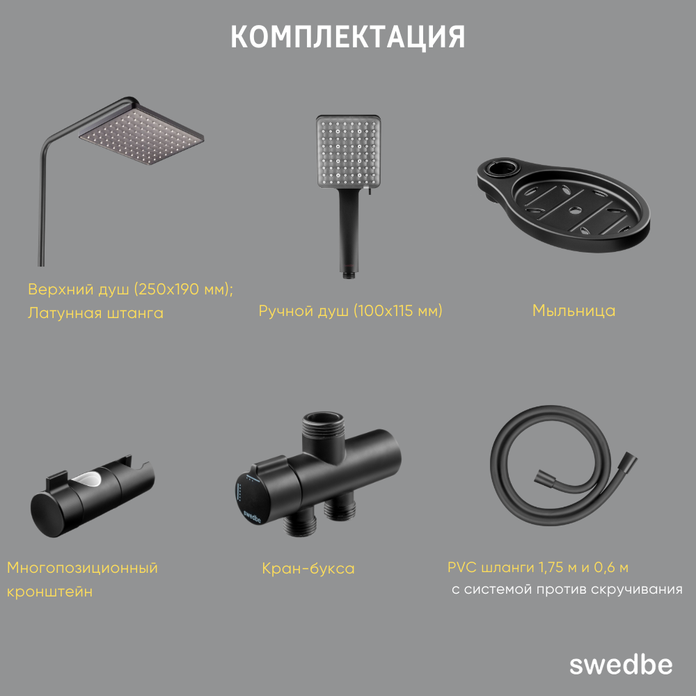 Семейный душ с нижним подключением Swedbe Hermes, цвет: черный 5103B