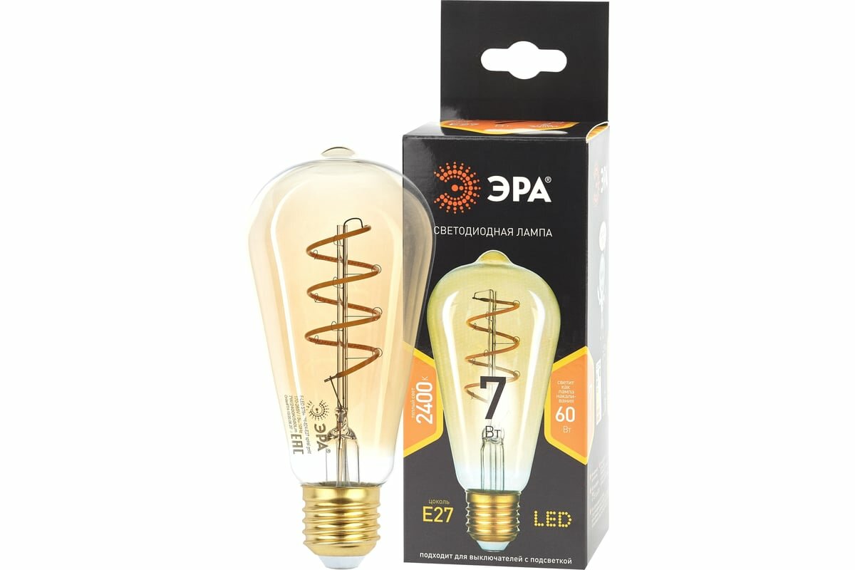 Лампа F-LED ST64-7W-824-E27 spiral gold (филамент спир. зол. 7Вт тепл. E27) (20/960), ЭРА Б0047665 (1 шт.)
