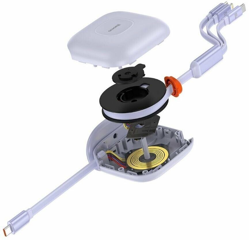 Кабель Baseus Traction Series Retractable 3-in-1 Fast Charging Cable Desktop Organizer Type-C to M+L+C 100W 1.7m Purple (CAQY000005) интересное: