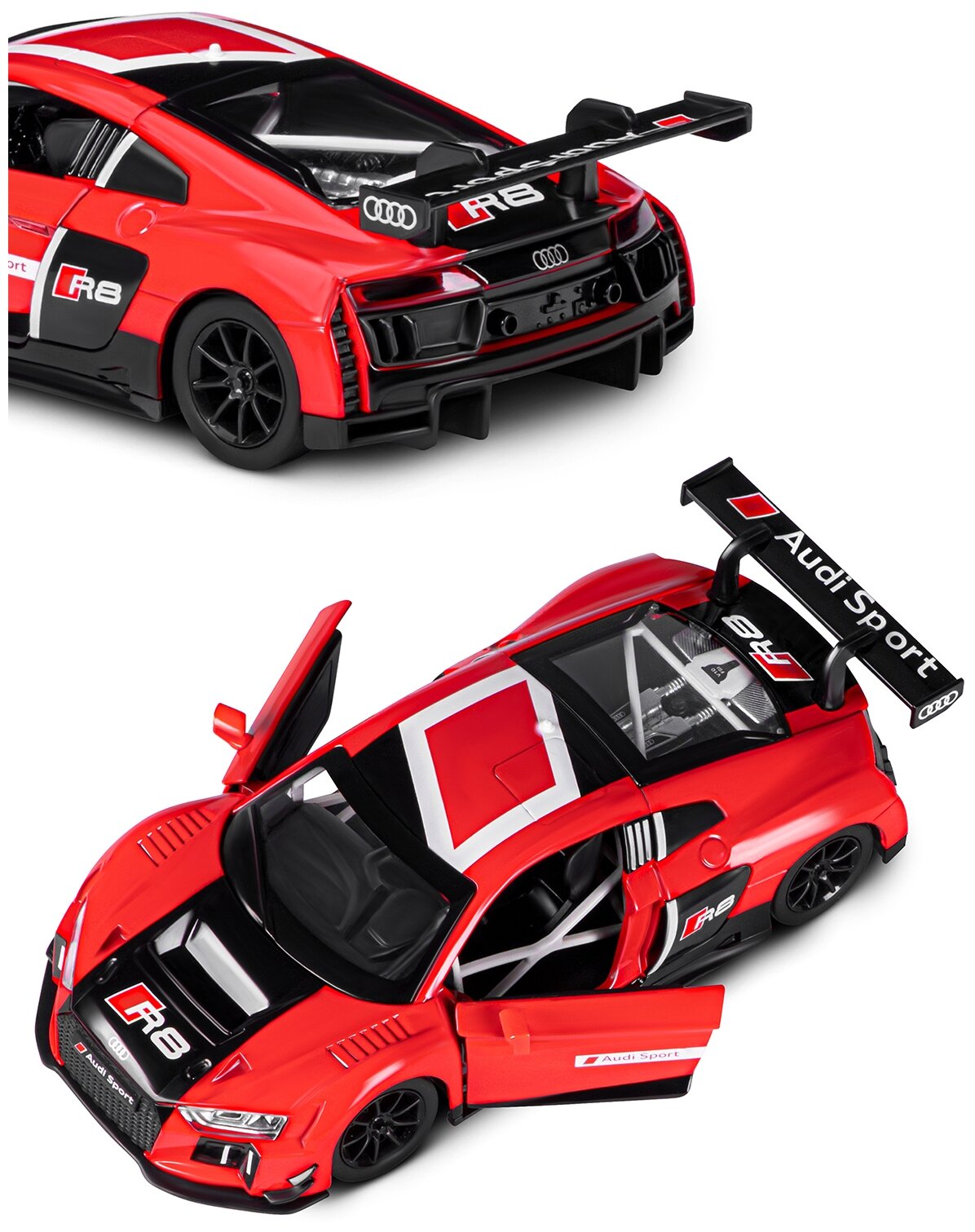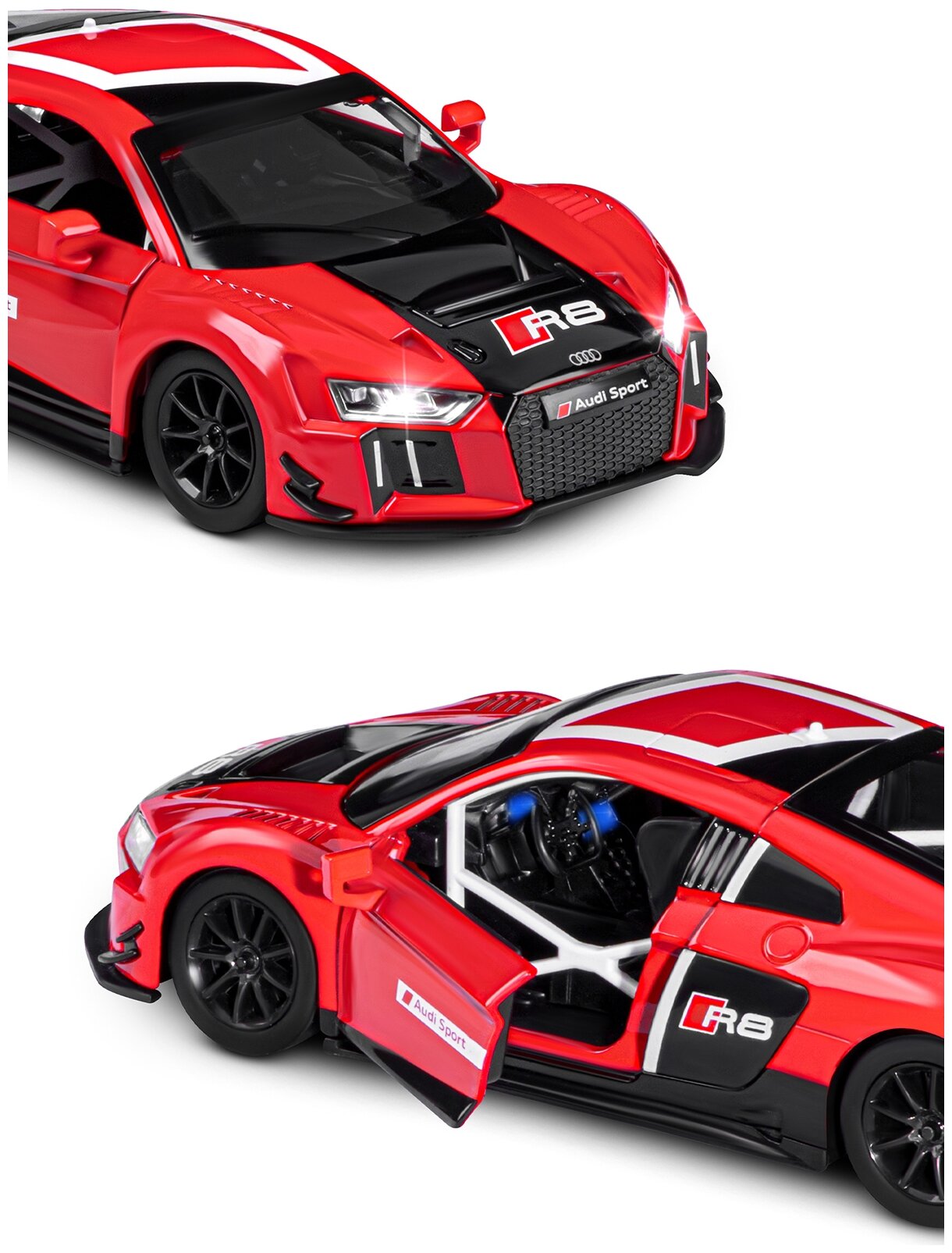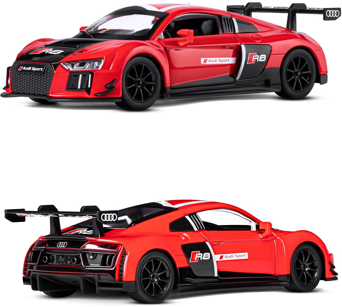 Модель машины Автопанорама 1:24 Audi R8 LMS, красный, свободный ход колес, открываются двери, свет, звук (JB1200124)