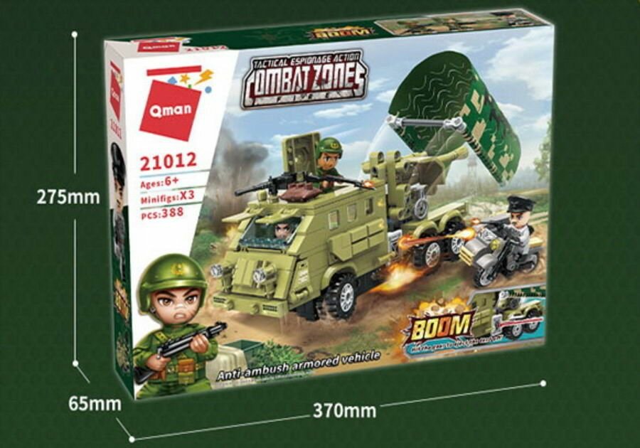 Qman Конструктор Военная зона «Гаубица», 3 минифигуры и 388 деталей