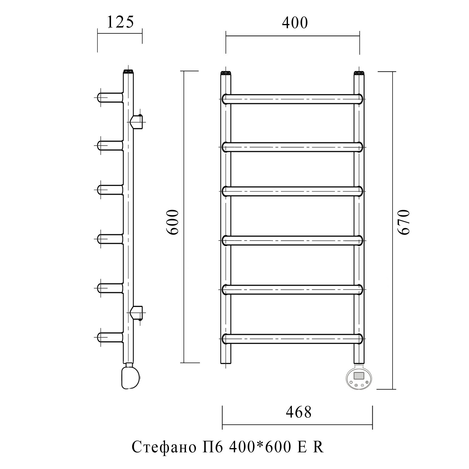 Полотенцесушитель электрический Domoterm Стефано П6 400*600 ER справа, хром