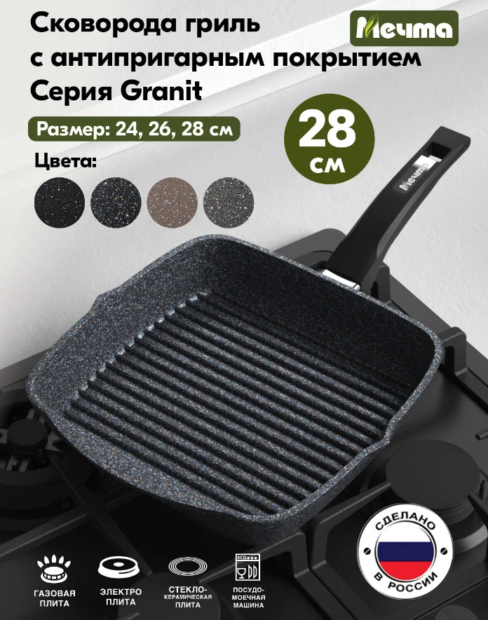 Сковорода-гриль Мечта "Гранит star" квадратная, съемная ручка 28 см (068803)