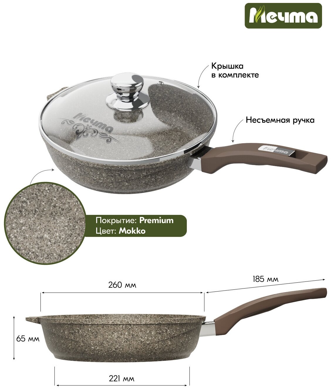 Купить Мечта С26902 Premium (mokko) 26см с несъемн. ручкой и стекл. крышкой
