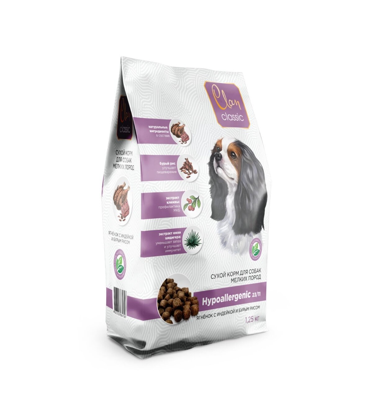 Купить CLAN CLASSIC Hypoallergenic-23/11 Сухой корм для собак мелких пород гипоаллергенный 1,25 кг с ягненком, индейкой и бурым рисом