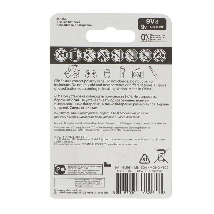 Батарейка Крона Kodak LR61-1BL, Max Alkaline интересное: