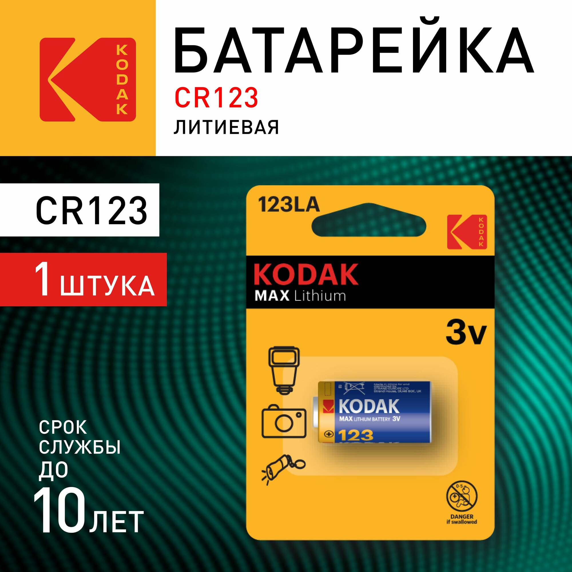 СохранитьБатарейка Kodak Max Lithium CR123, в упаковке: 1 шт. интересное: