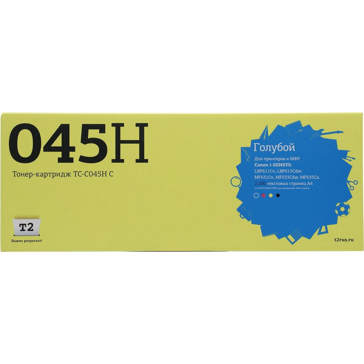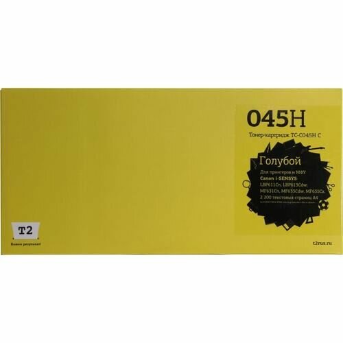 T2 Картридж T2 Cartridge 045H C TC-C045H C для Canon i-SENSYS LBP611Cn/613Cdw/MF631Cn/633Cdw/635Cx (2200 стр.) Голубой, с чипом