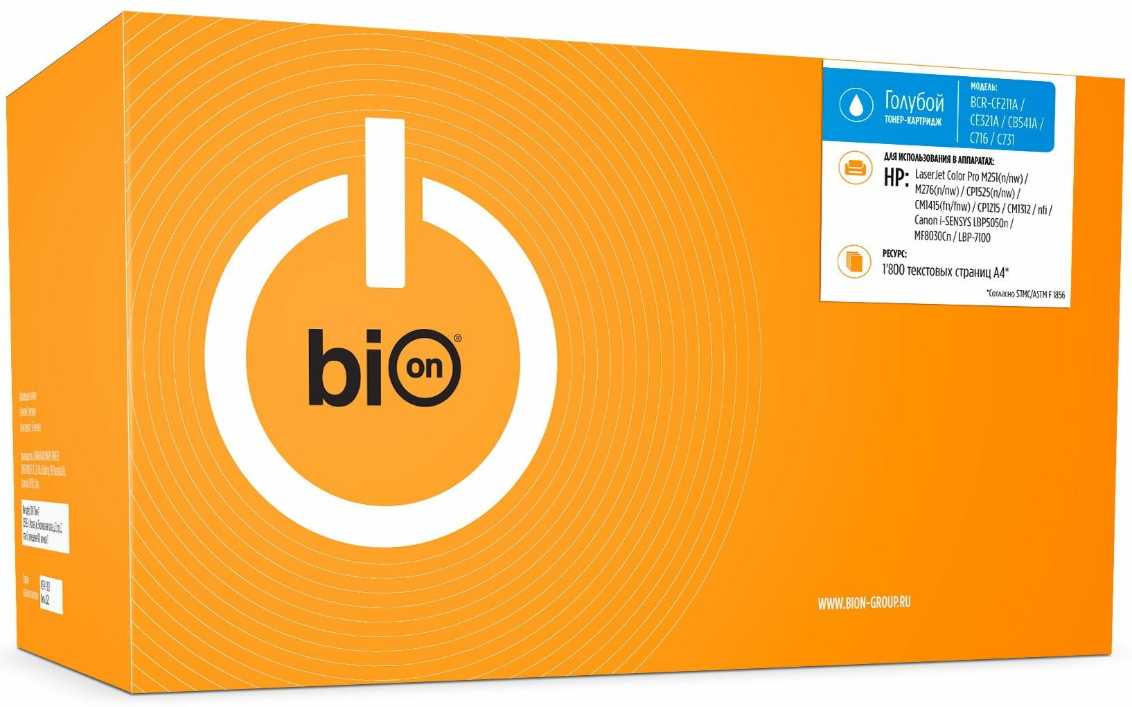 Bion CF211A/CE321A/CB541A/C716/C731 Картридж для HP LaserJet Color Pro M251n/nw/M276n/nw/CP1525n/nw/CM1415fn/fnw/CP1215/CM1312/nfi/ Canon i-SENSYS LBP