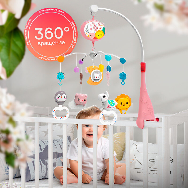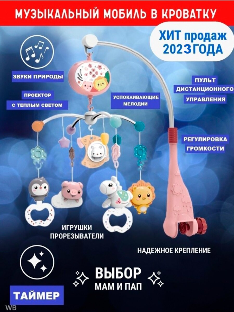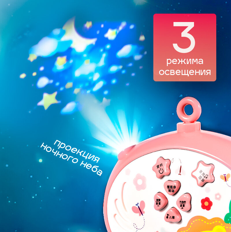 Детский музыкальный мобиль на кроватку с проектором на пульте ДУ, ТМ Тимоша интересное: