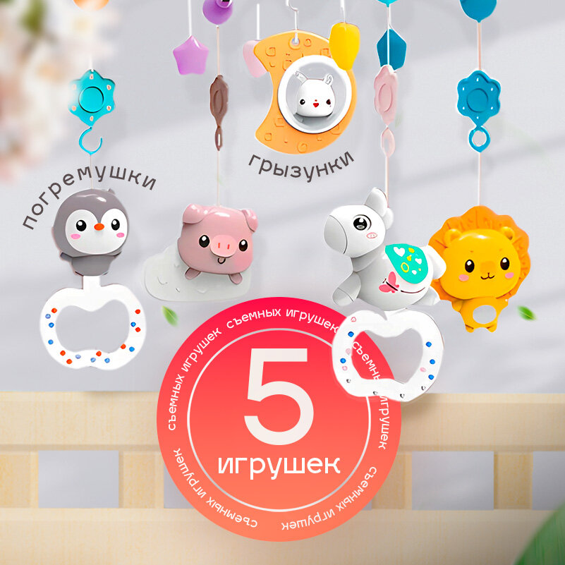 | Особенности | вращение игрушек / звуки природы / звуковые эффекты / проектор / пульт ДУ / регулировка громкости / световые эффекты |