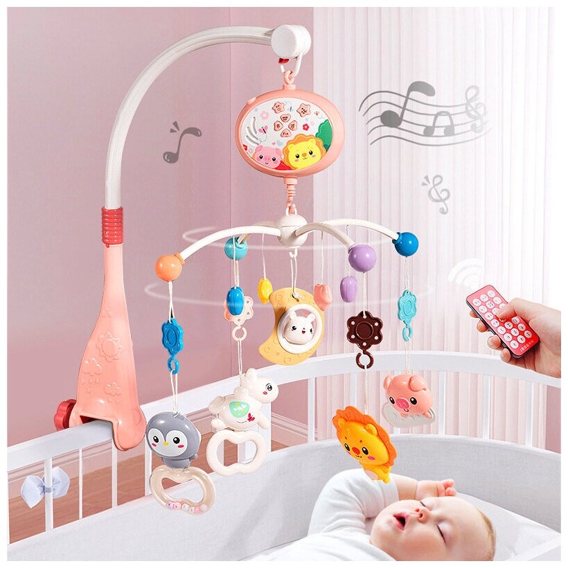 Детский музыкальный мобиль на кроватку, музыкальная карусель с проектором и подвесками на пульте ДУ