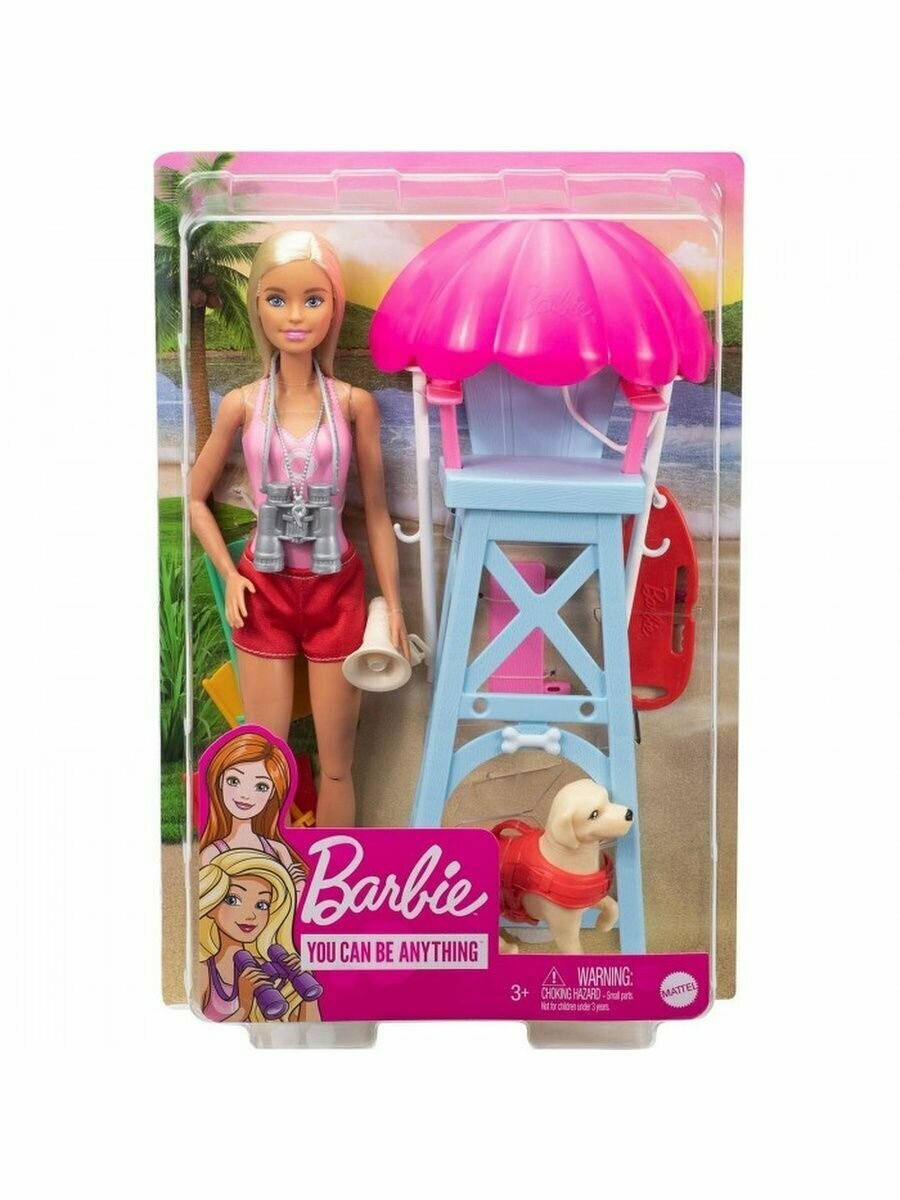 Кукла Mattel Barbie Барби Спасатель на пляже с вышкой, собакой и аксессуарами GTX69